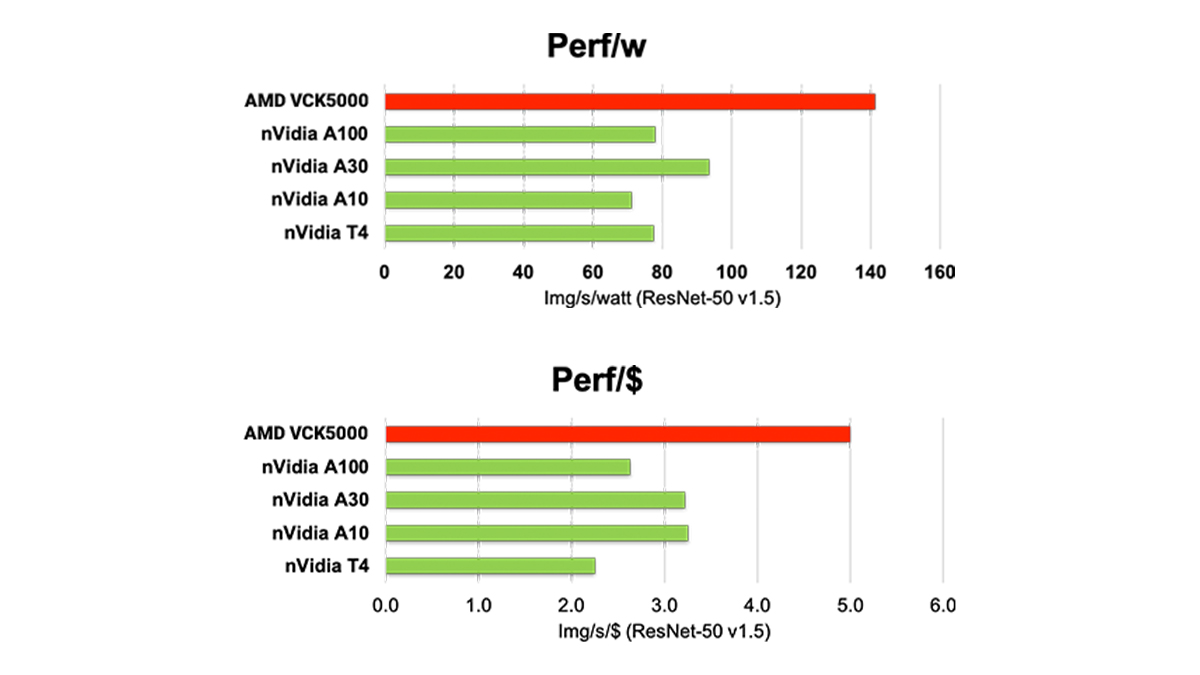 The AMD VCK5000 Versal™ development card is built on the AMD 7nm Versal adaptive SoC architecture and is designed to optimize 5G, data center compute, AI, signal processing, radar, and many other applications. Fully supported by Vitis™, Vitis AI, and partner solutions like Mipsology Zebra® and Aupera® VMSS, the VCK5000 domain-specific architecture brings strong horsepower per watt while keeping ease-of-use in mind with C/C++, software programmability. Delivering the near 100% compute efficiency per watt in standard AI benchmarks and 2x TCO compared to the flagship nVidia GPUs, the VCK5000 development platform is ideal for CNN, RNN, and NLP acceleration for your cloud and edge applications.