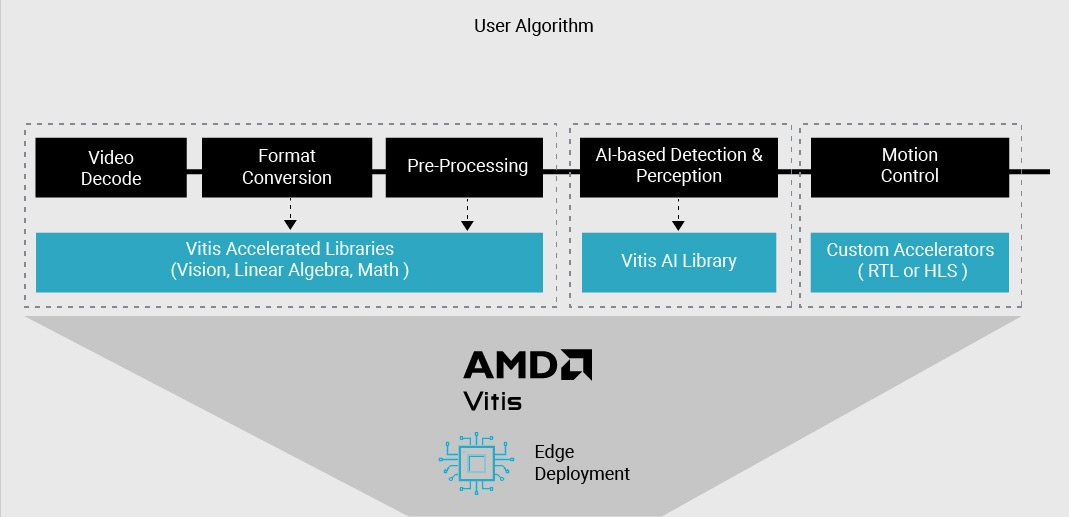 Vitis accelerated-libraries are accessible to all developers through GitHub and scalable across all AMD platforms. Develop your applications using these optimized libraries and seamlessly deploy across our platforms at the edge, on premise, or in the cloud without having to reimplement your accelerated application.