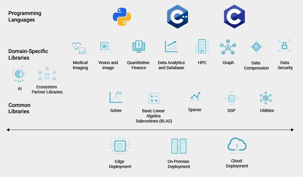 • Leverage the rich growing ecosystem of partner-accelerated libraries, framework plug-ins, and accelerated applications to hit the ground running and accelerate your path to production.
